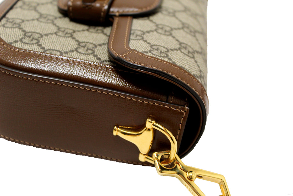 New Gucci Brown Classic Supreme Canvas Horsebit Mini 1955 Shoulder Bag 658574