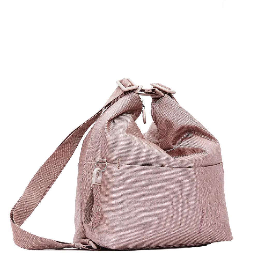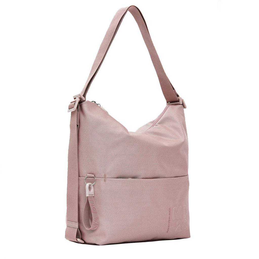 Mandarina Duck Hobo Bag MD20 Rose, spacious syntethic fabric shoulder bag with adjustable handle to wear it also as a backpack. Zip pocket on the front. Compartment with zip closure and lined interior.