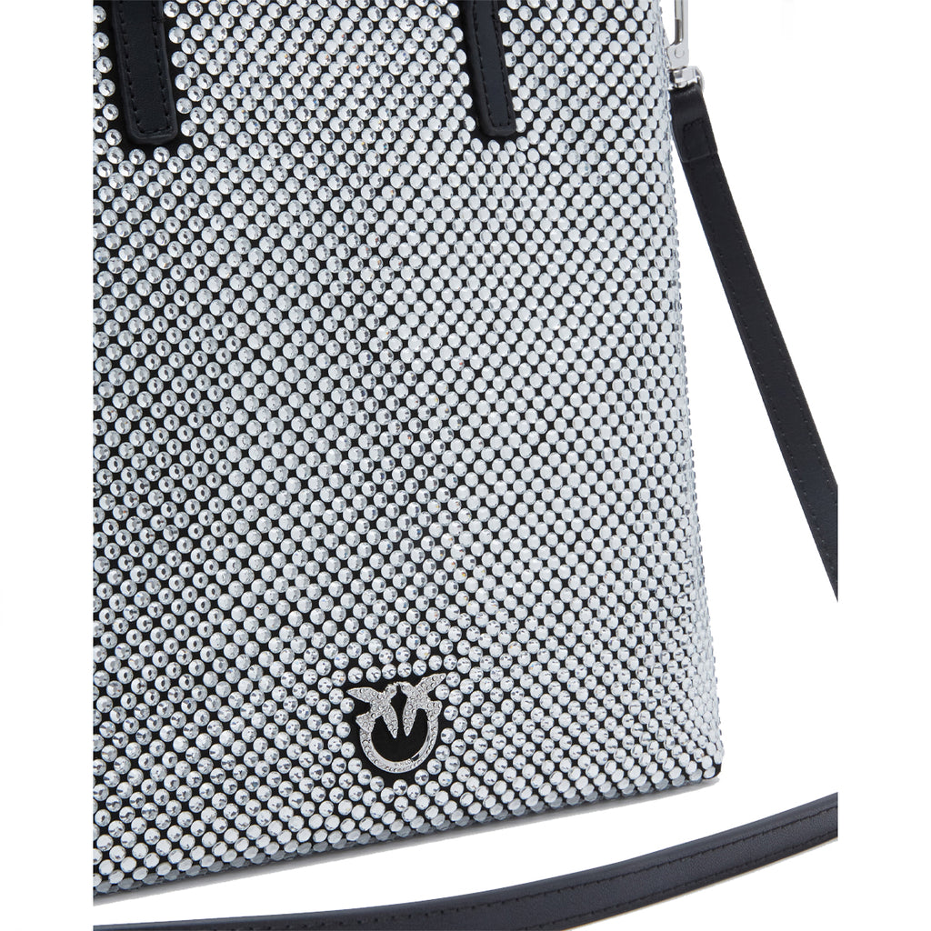 Pinko - Mini Shopper Strass Jewel Nero Canna Di Fucile - 102746A218 - NERO/LIMOUSINE-CANNA/FUCILE