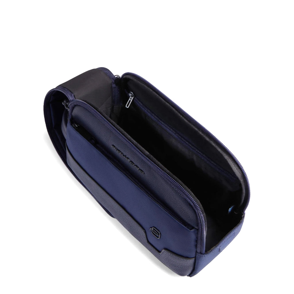 Marcel Blu Beauty Case Piquadro, men's accessory made of recycled synthetic fabric. Equipped with side wristlet. Compartment with zip closure and spacious lined interior.