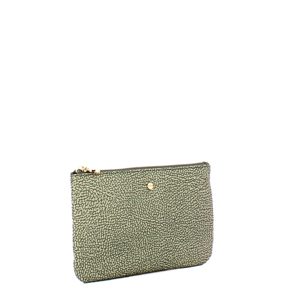 Borbonese Clay Gray Pouch made of Recycled Nylon, slim and practical pouch in synthetic fabric with zip closure and lined interior.