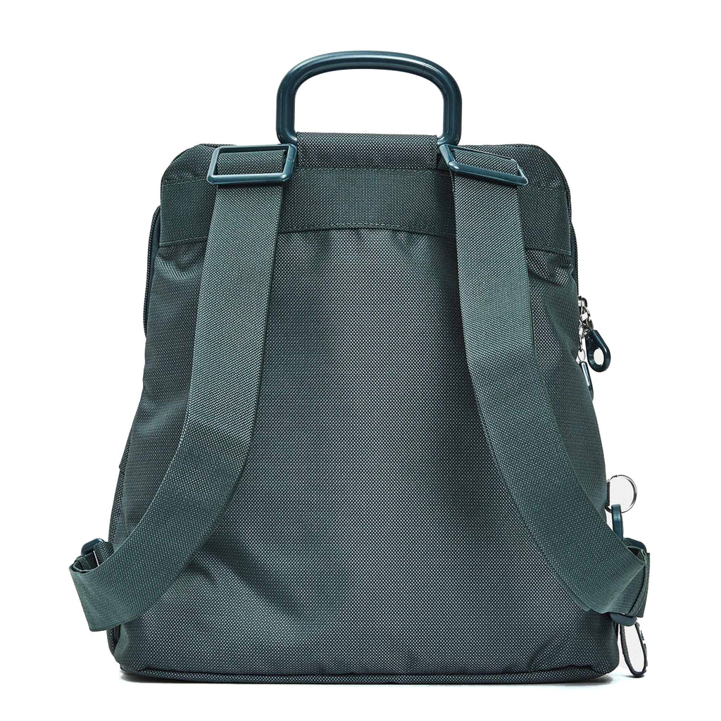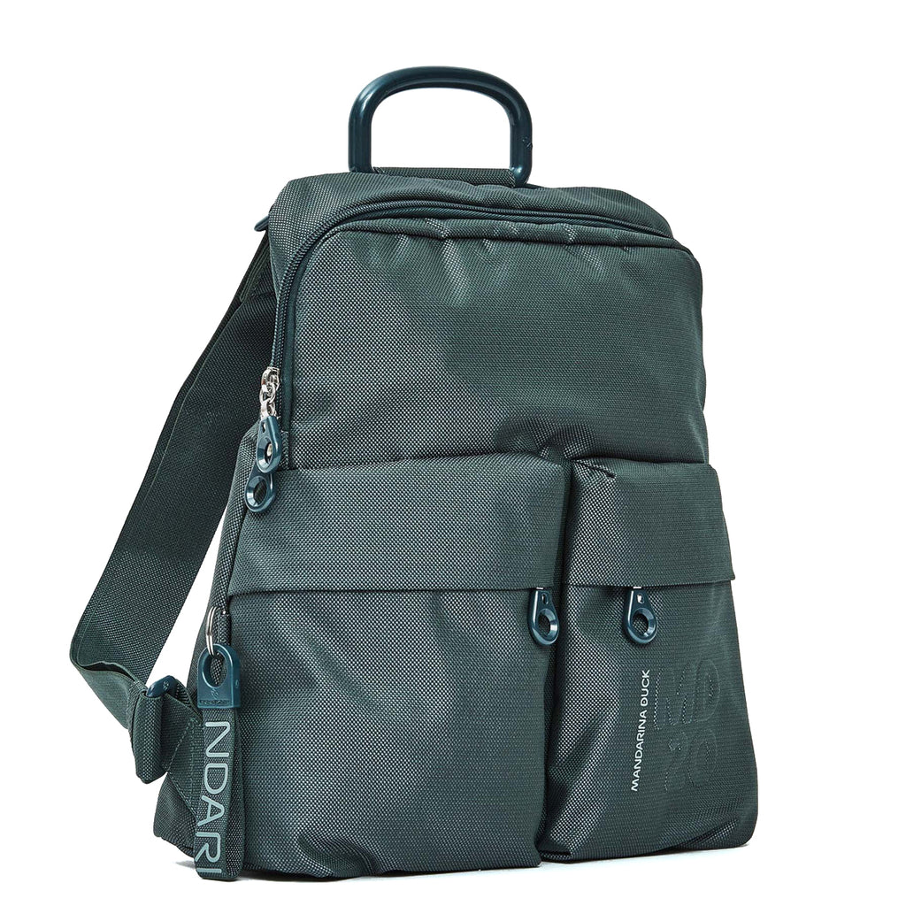 Backpack MD20 Pine Green Mandarina Duck, lightweight and sporty fabric accessory with top handle, adjustable fabric shoulder straps, front pockets with zip closure. Spacious main compartment with zip closure and lined interior.