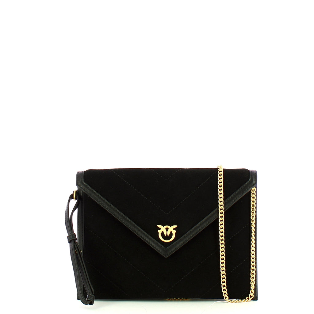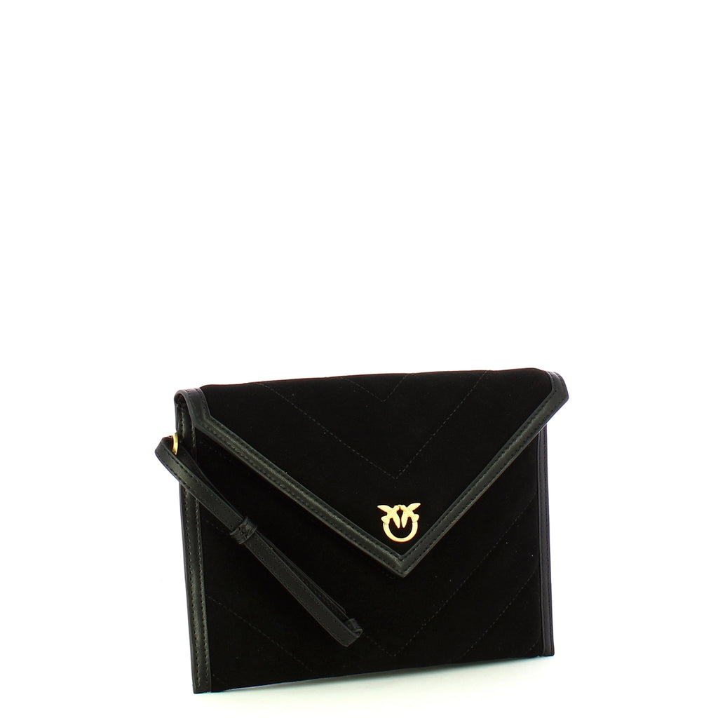 Pinko - Flat Pochette in Suede Nero Limousine Matt Gold - 104820A2JH - NERO/LIMOUSINE/-/MATT/GOLD