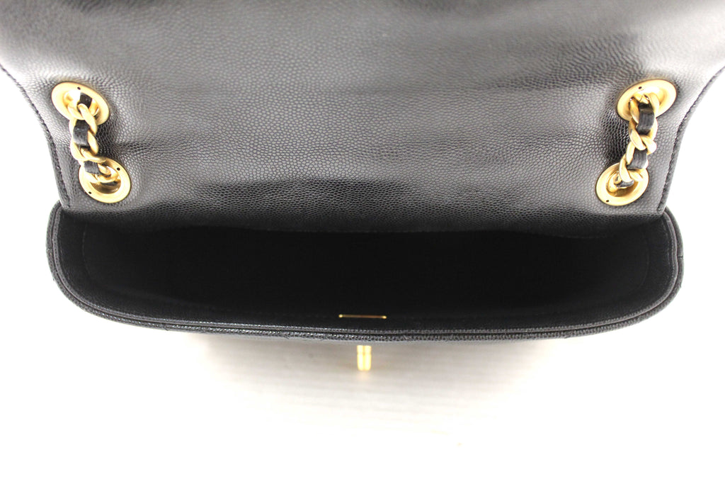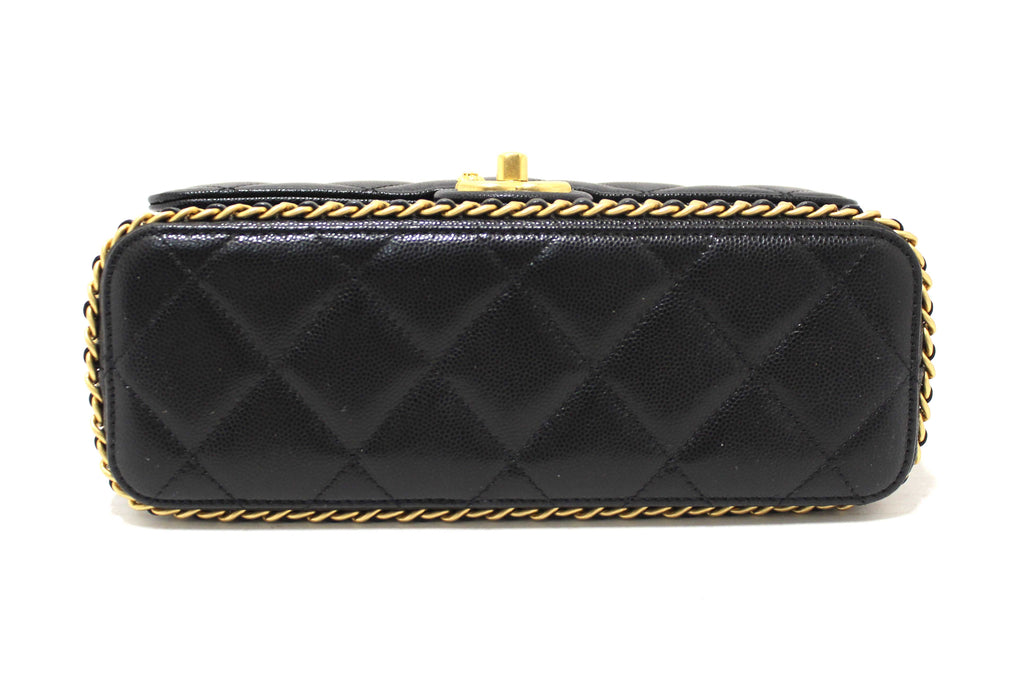 Chanel Black Quilted Caviar Leather Camellia Chain Around Flap Shoulder Bag