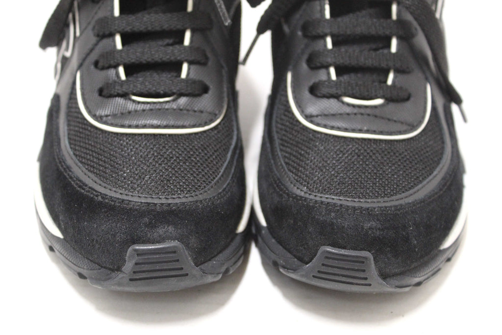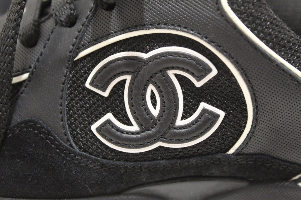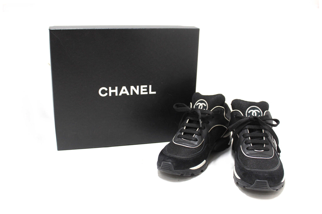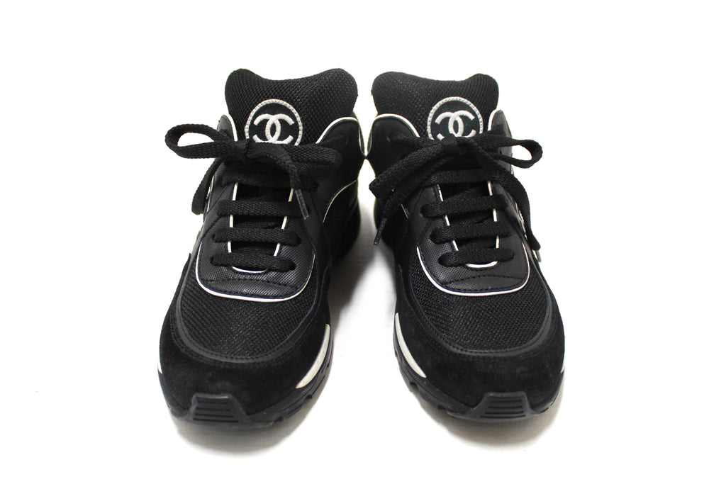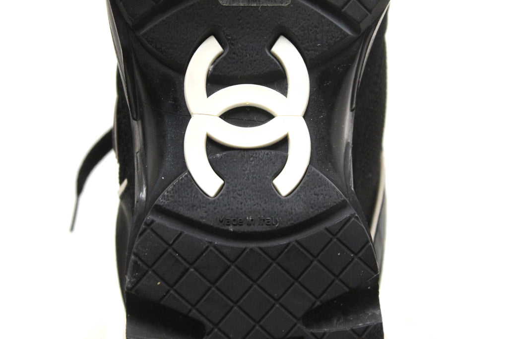Chanel Black Suede Leather Calfskin CC Sneakers Size 36