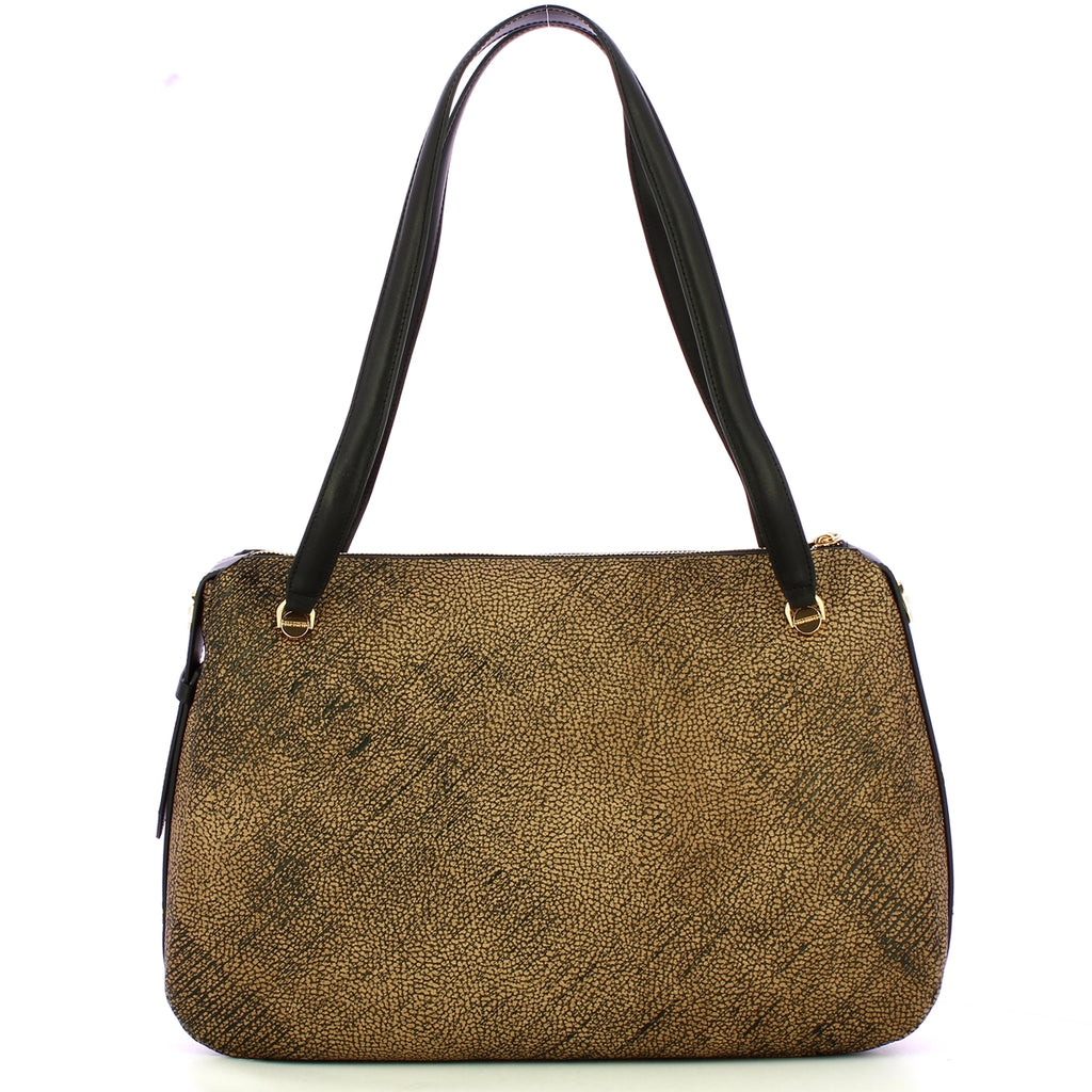 Borbonese - Borsa a spalla Oyster Large in tela rivestita OP Naturale Nero - 923525AZ5 - OP/NATURALE/NERO