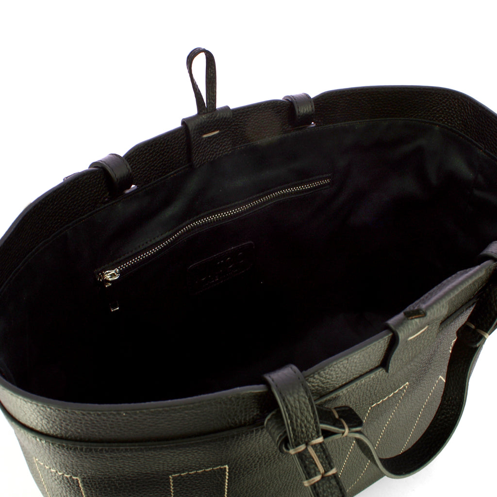 Iuntoo - Sibilla Medium Nero Shopping Bag with seams - 191202 - NERO