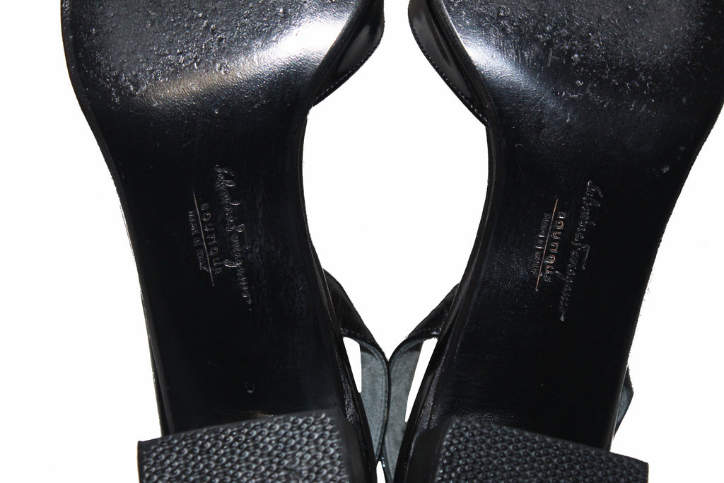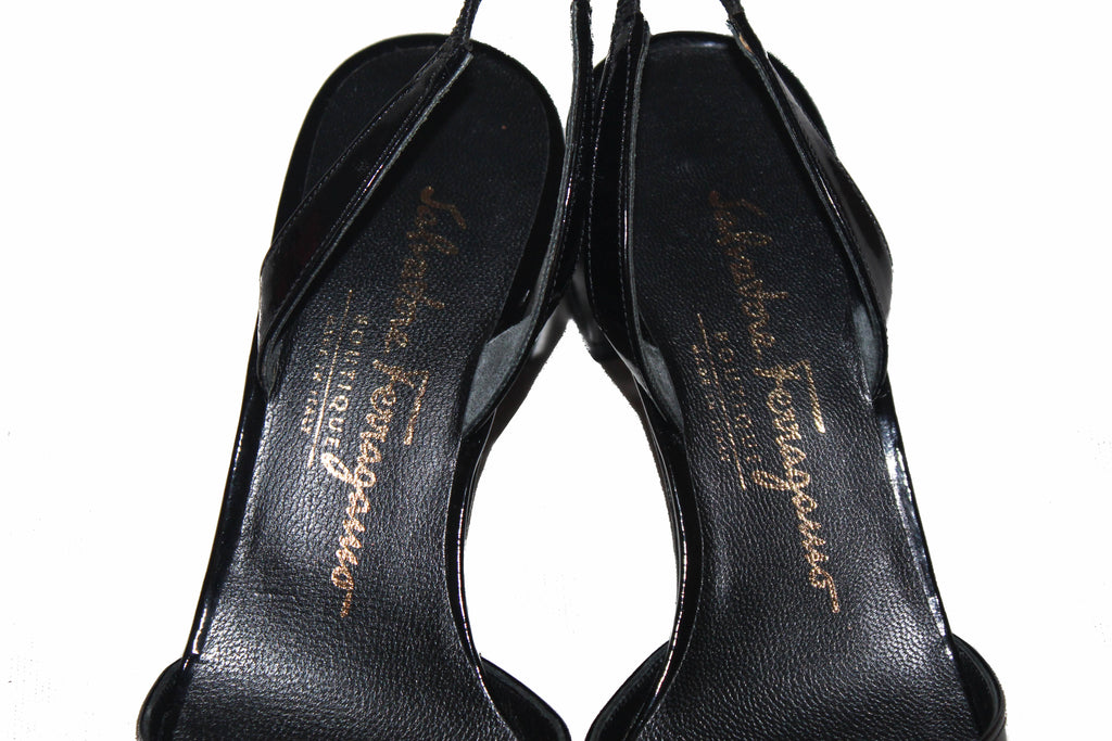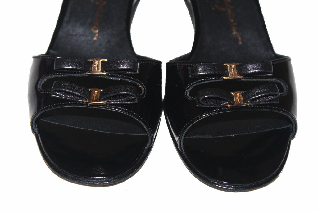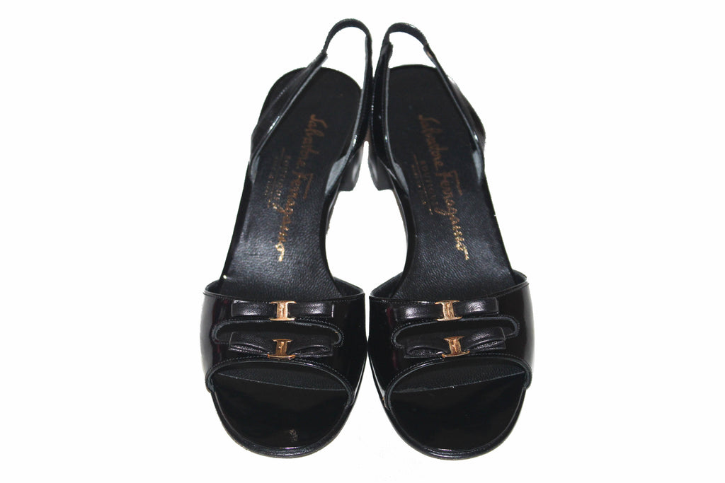 Salvatore Ferragamo Boutique Black Patent Leather Bow Slingback Sandal 5.5 B