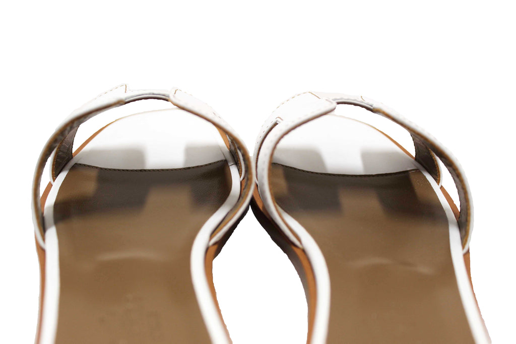 White calfskin leather with iconic Hermes H cut-out toe strap