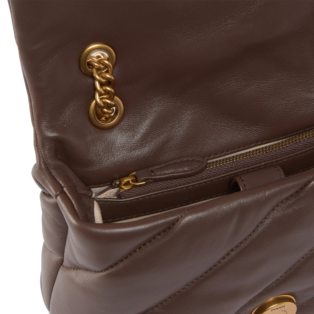 Pinko - Love Puff Maxi Quilt Marrone Castano Antique Gold Mini Crossbody Bag - 100039A0F2 - MARRONE/CASTANO-ANTIQUE/GOLD