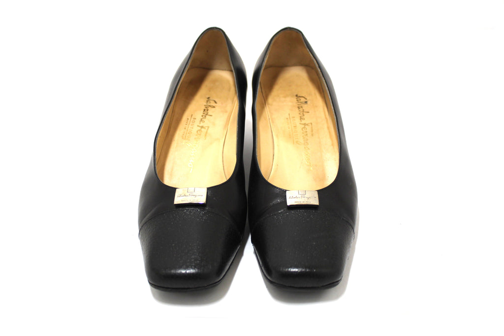 Salvatore Ferragamo Black Leather Ramila 5cm Pumps Shoes Size 7.5D