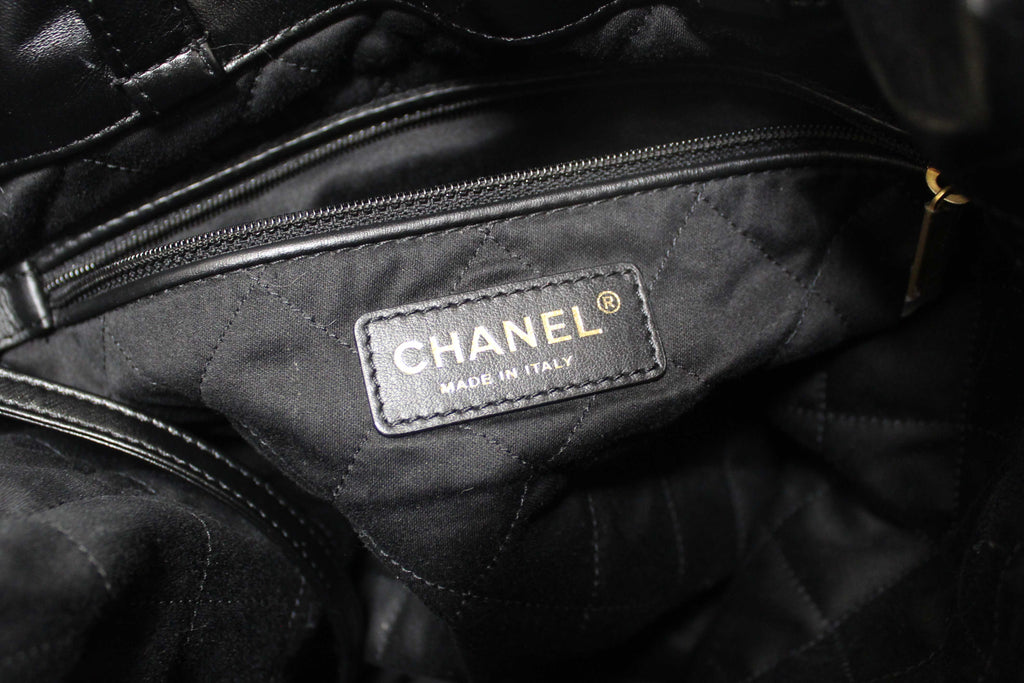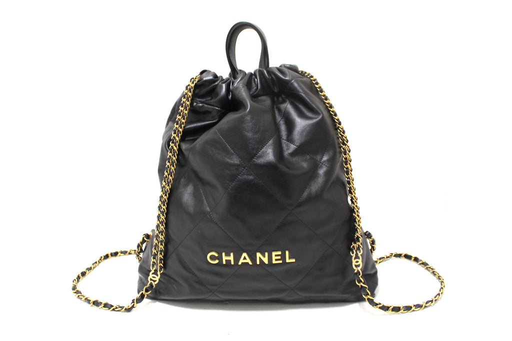 Chanel Black Chanel 22 Calfskin Leather Drawstring Chain Backpack